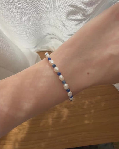 Essa pulseira é a moda do verão de hoje e de muitos anos! Além de ter pérolas barrocas de alta joalheira e a cianita azul lapidada, ou seja, um brilho perfeito, essa pulseira também carrega a energia de poder, resiliência, amor e muita proteção!