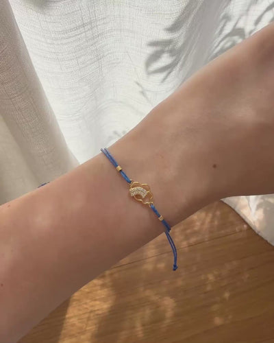 Pulseira lembrete em banho ouro 18k com pulseira em algodão.