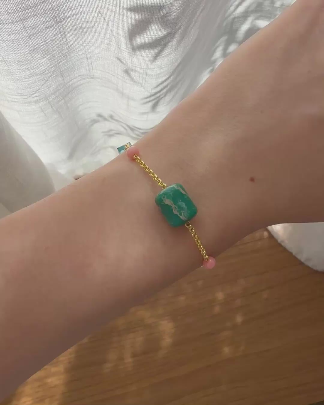 Leve e ousada como a música, essa pulseira tem a cor, a vibe de Mamma Mia na Grécia e a energia de lealdade, proteção, vitalidade e alegria do coral e da jaspe.
